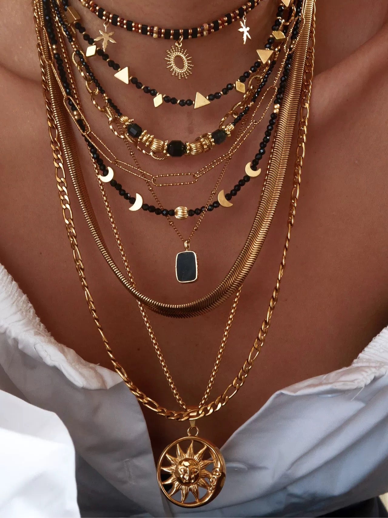 Amor Grace|Cleopatra with classic black and gold charm|Black spinel agate moon phase necklace