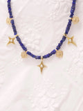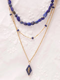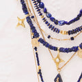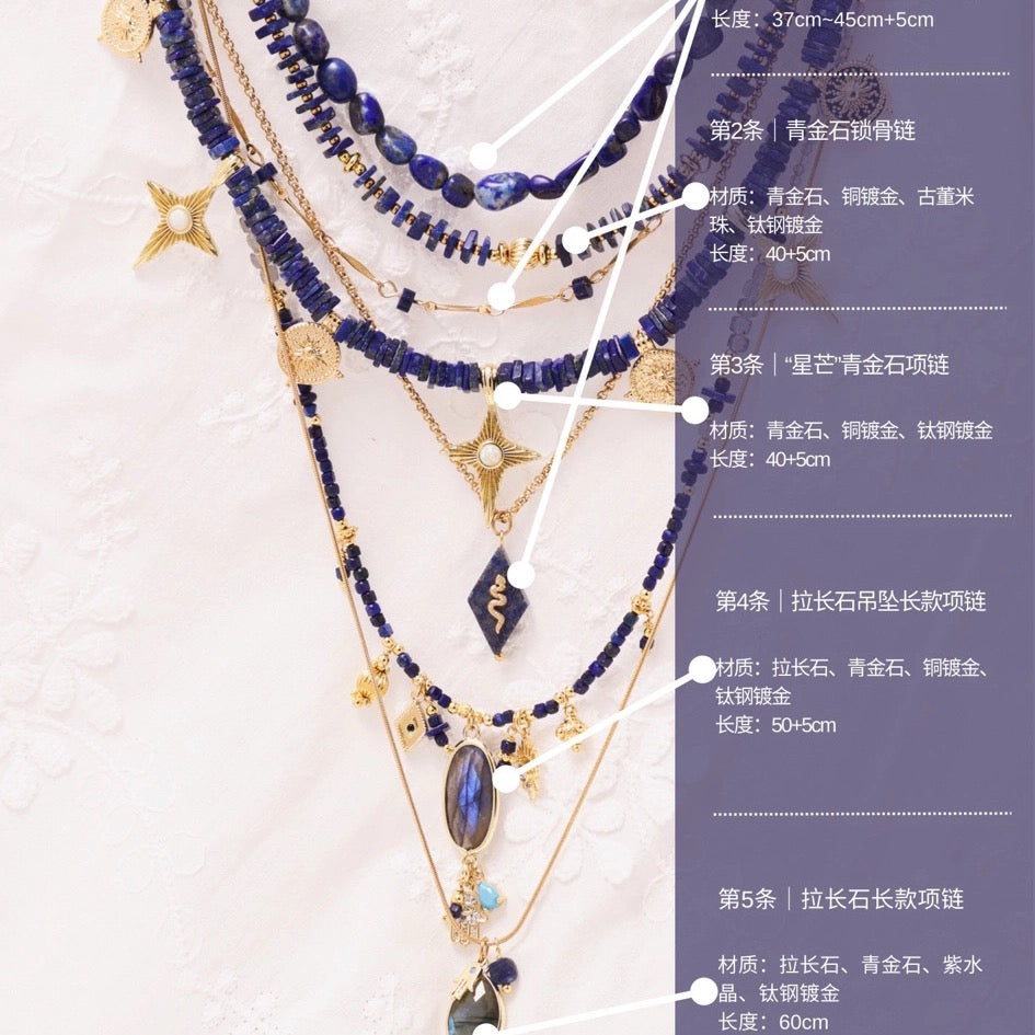 Combining gypsy style with the beauty of nature, this handmade beaded necklace is made of lapis lazuli and turquoise as the main materials, with titanium steel gold-plated and copper gold-plated, showing unique charm and personality. Typical gypsy style design, each bead is carefully selected and arranged, showing unique colors and patterns, highlighting the romantic freedom of gypsy culture. Lapis lazuli represents courage and wisdom, and turquoise symbolizes balance and harmony. The two blend with each other to exude charming luster and add mysterious attraction. Titanium steel gold-plated and copper gold-plated materials are gorgeous and durable, making the overall shape more elegant and fashionable. Whether casual or formal, this necklace gives you a unique style.
