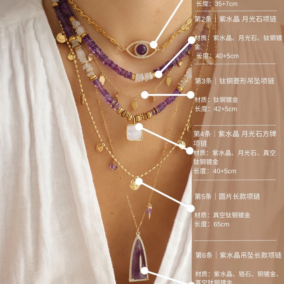 Amor Grace |"White and Purple" Amethyst Moonstone Custom Beaded Necklace New Chinese Style Travel Outfit