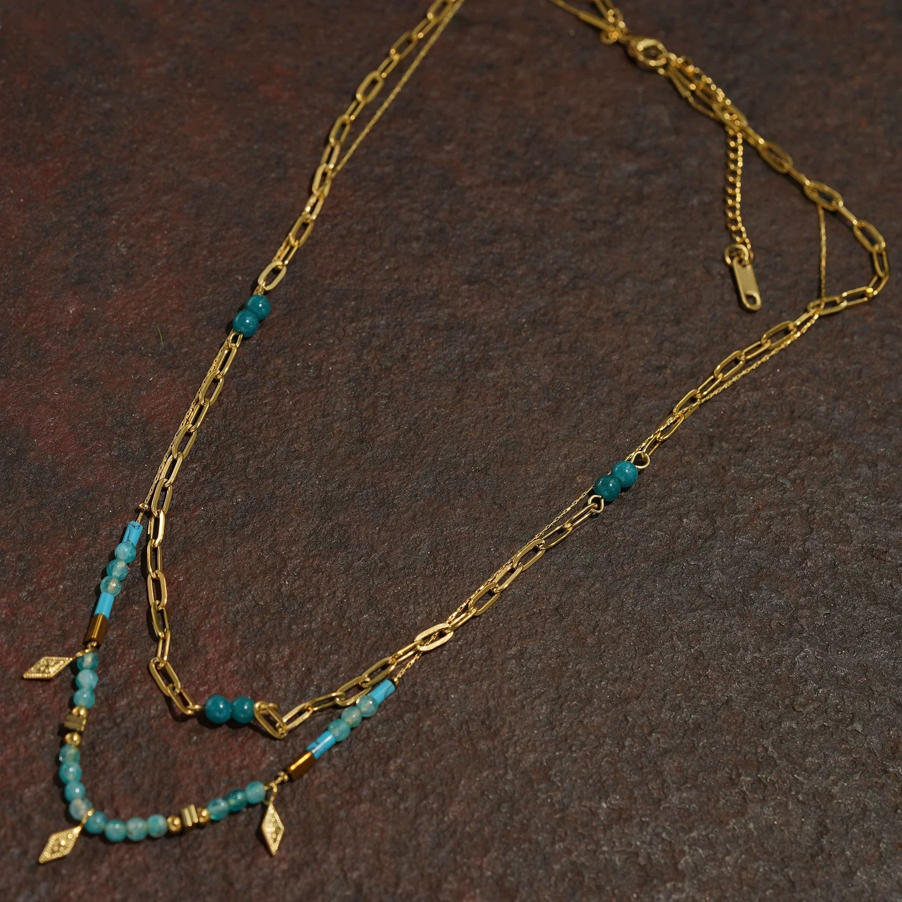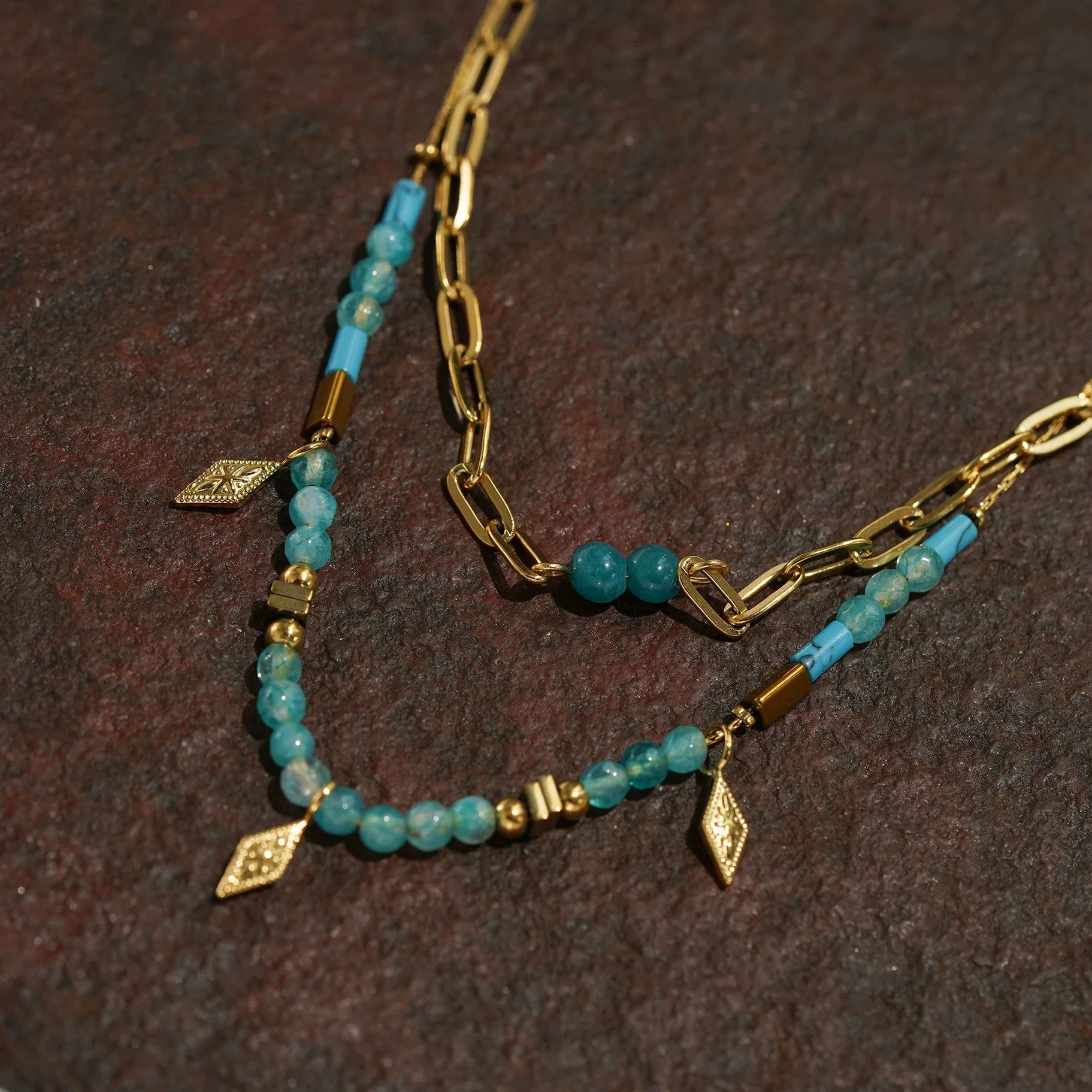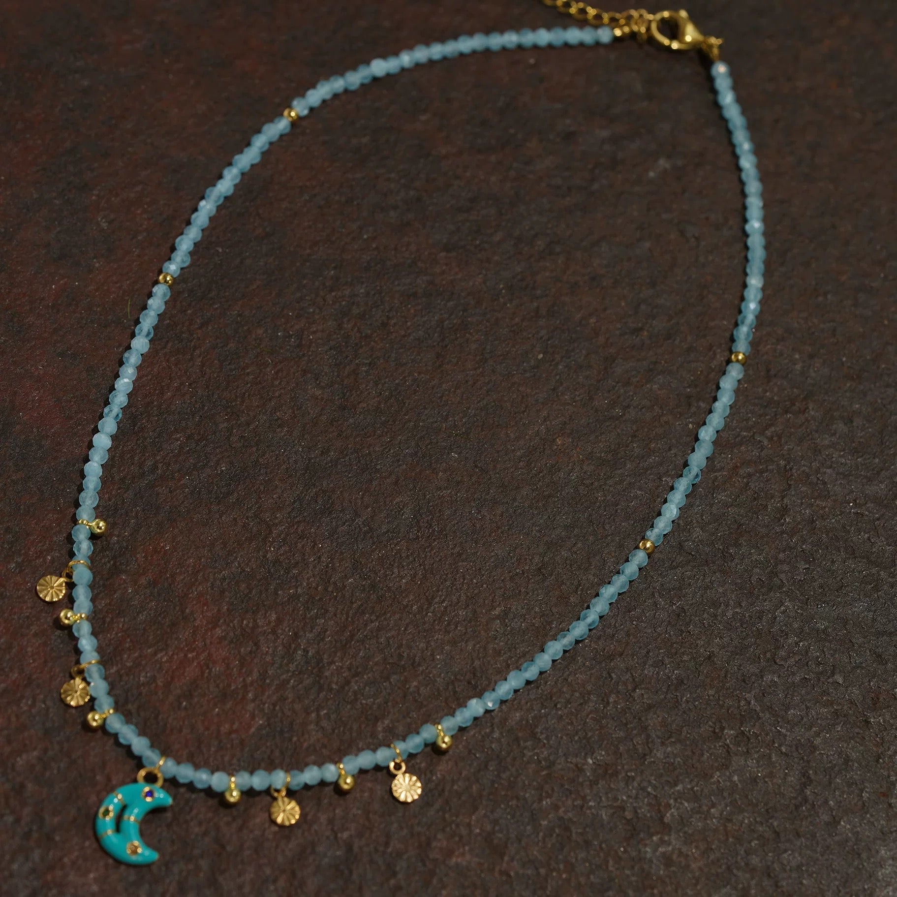 Moon blue layered necklaceNatural stone beaded necklacePhoto box stacking accessories